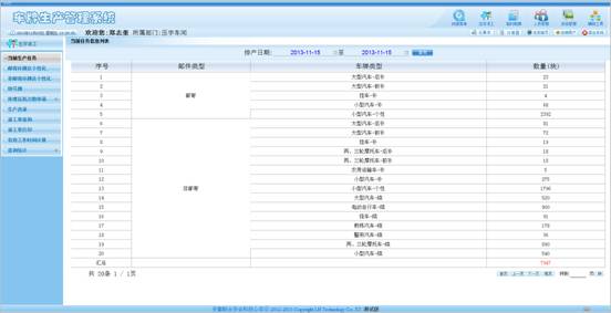 当前我国机动车号牌生产企业大多采取冲压和烫印工艺,存在数量大,种类多,效率低,安全差等现状。随着发照服务点与个性化号牌的增加,以及号牌新标准的实施,号牌生产企业需要达到安全、快捷、可追溯的管理要求。我们基于公安管理机关可及时追溯生产过程,制造企业可实时管控计划与生产动态的需要,开发出了“UNS机动车号牌安全生产管理系统V1.0”,通过改进生产工艺,变“人工”为“自动”,有效解决了号牌生产企业遇到的新问题。即可实现管理信息化、生产安全化,又可大大降低用工数量,提高企业效益。本系统联合安徽皖安标牌厂共同开发,并已成功使用。 UNS号牌安全生产管理系统可解决您遇到的以下问题: 1) 出现用户产品投诉的时候,能够根据产品号码追溯这批产品的所有生产过程信息; 2) 立即查明它的原料供应商、操作机台、操作人员、经过的工序、生产时间和关键的工艺参数; 3) 同一工人压制号牌时,能自动校验号牌,能自动提示工人,以防止出现压制错误和废品; 4) 分析过去12小时内生产线上出现最多的5种产品缺陷、次品数量; 5) 提供目前仓库以及前工序、中工序、后工序线上的各种产品数量;分别配送哪个车管所;何时能够交货; 6) 统计生产线工人和加工设备有效生产时间,停转和空转时间;告诉您影响设备生产潜能的最主要原因; 7) 自动统计每个过程的生产数量、合格率。 8) 及时查看工人完工量。 UNS号牌生产管理系统可以帮助您在统一的平台上集成生产调度、产品跟踪、质量控制、设备管理、原料管理、网络报表等功能,使用统一的数据库,通过网络连接,可以同时为计划、生产、物流等部门等提供实时生产信息。通过对制造过程的整体优化,帮助企业实施完整的闭环生产,协助企业建立一体化和实时化的信息体系。 二、项目功能 1、主要有:压字派工、压字生产、擦字派工、擦字生产、生产厂长、维修测试、生产订单、人员管理、系统管理、辅助工具。详情会在【功能描述】中介绍。 2.2 运行环境 1) 服务端 系统版本:Windows Server 2003及以上版本 数据库:SQL Server 2005及以上版本 IIS版本:IIS7.0及以上版本 内存大小:16G以上 CPU:8核以上 2) 客户端 系统版本:无要求。 浏览器:IE8+、其他IE内核浏览器兼容视图模式 显示屏:21寸 2.3 软硬件和服务 1)UNS号牌生产管理系统。B/S版(通过网页查看与操作) 2)UNS压机控制软件。C/S版(压机时通过网页插件自动运行) 3)压机控制模块。硬件(安装与压机上,与UNS压机控制软件相结合,达到控制压机压字的目的) 4)软件安装、用户使用手册、产品说明。 5)售后支持。 6)产品更新。(已有功能或号码升位免费更新升级,) 三、功能描述 3.1 登录